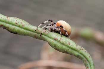 I was sitting at my computer and this orangy-red spider came down the wall. For some reason I found her spooky. I usually like them.